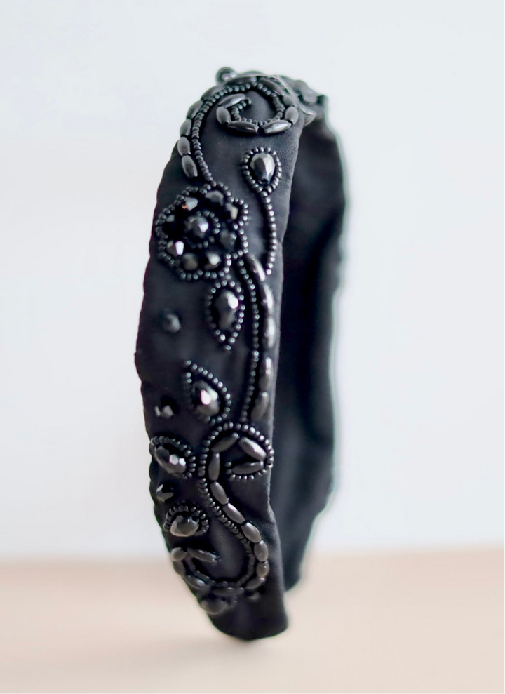 Elevate your accessory game with our exquisite hand-embroidered headbands, designed to add a touch of elegance and uniqueness to any outfit. Our Mini headband is meticulously crafted with high-quality polyester blend fabric, sequins, rhinestones, and green crystals; featuring intricate embroidery that showcases vibrant colors and beautiful patterns. Embrace individuality and express your style with our stunning hand-embroidered headbands—because every detail matters!