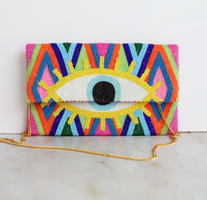Neon Yellow Eye Multicolor Clutch Bag