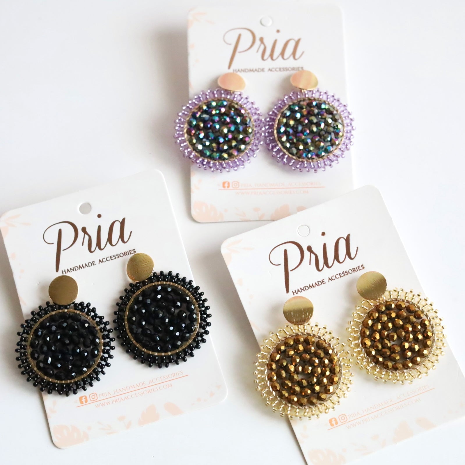 These elegant earrings are artisan-handmade, featuring a bronze base plated in 24K gold for a radiant, long-lasting finish. Accented with premium quality glass beads, each pair is thoughtfully crafted to balance beauty, durability, and comfort.