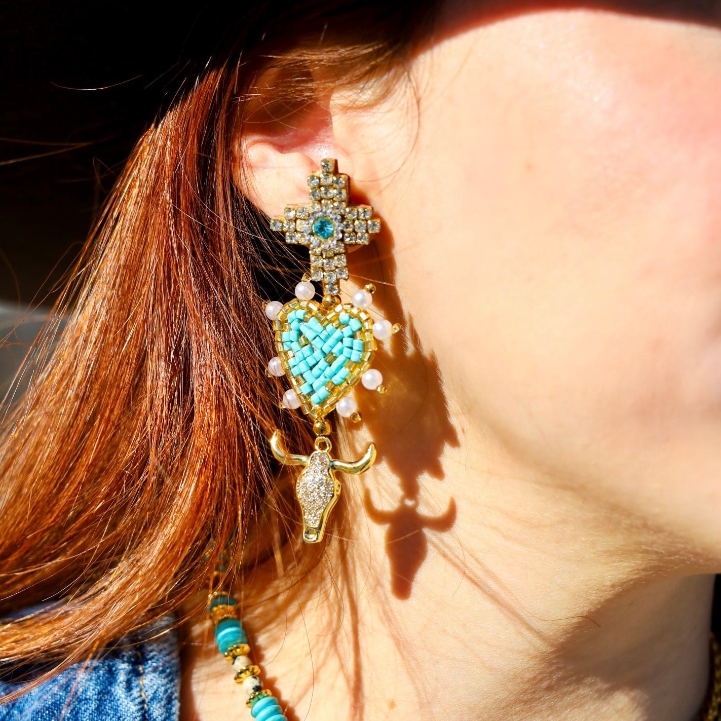 These statement earrings are hand-beaded by skilled artisans, with each pair thoughtfully crafted through hours of detailed beadwork. Designed using premium quality glass beads, they showcase intricate patterns, vibrant dimension, and exceptional craftsmanship.