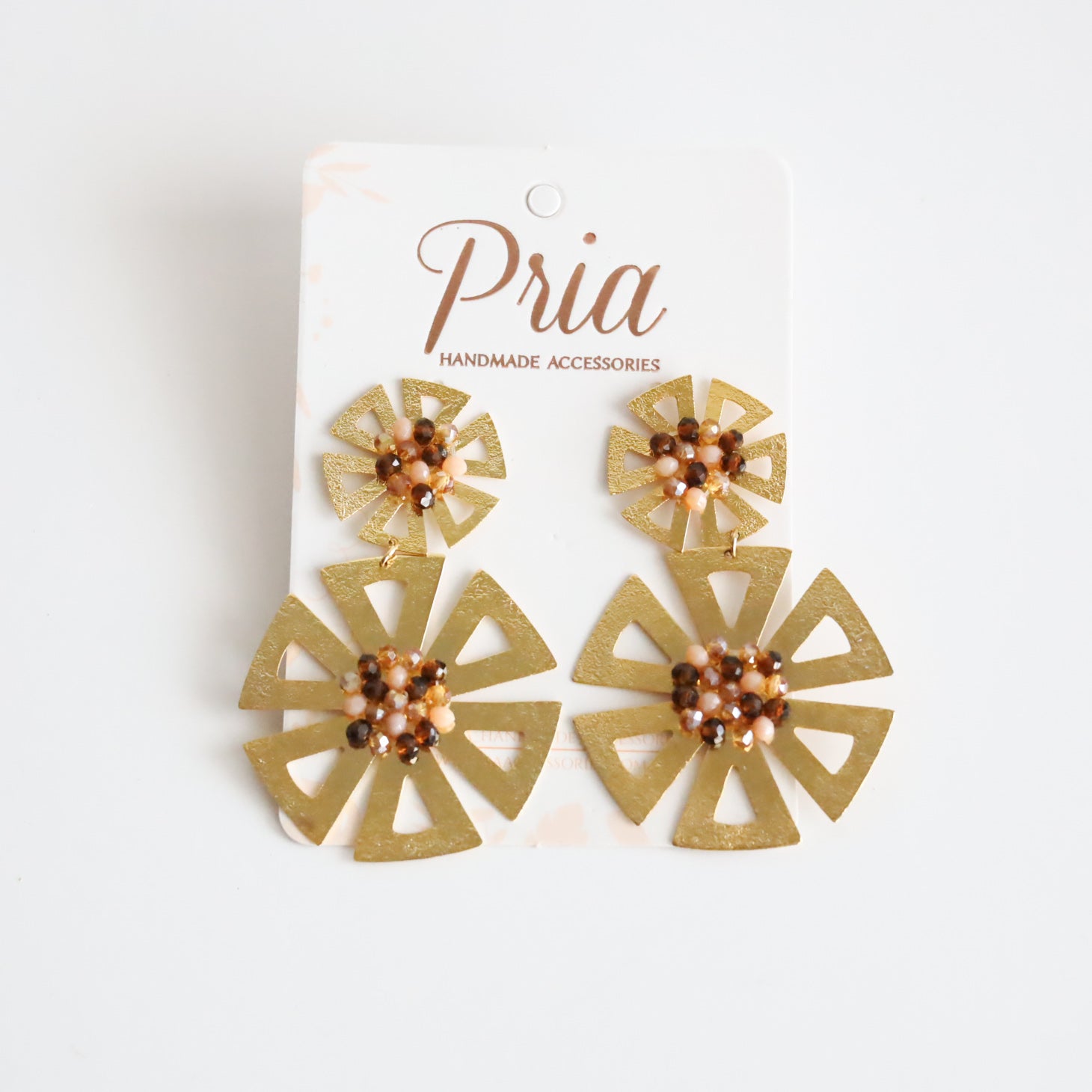 These elegant earrings are artisan-handmade, featuring a bronze base plated in 24K gold for a radiant, long-lasting finish. Accented with premium quality glass beads, each pair is thoughtfully crafted to balance beauty, durability, and comfort.