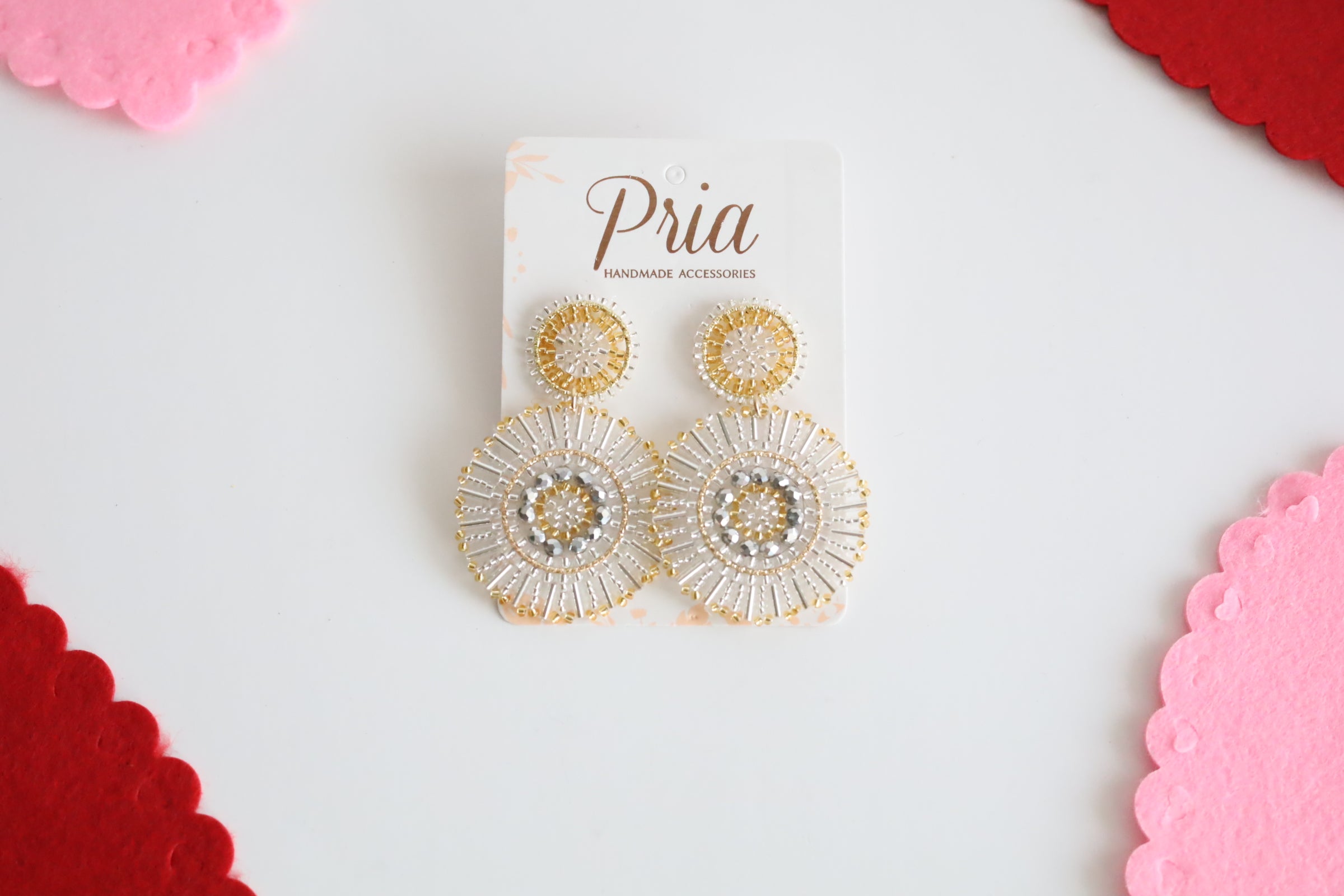 These statement earrings are hand-beaded by skilled artisans, with each pair thoughtfully crafted through hours of detailed beadwork. Designed using premium quality glass beads, they showcase intricate patterns, vibrant dimension, and exceptional craftsmanship.